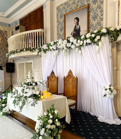 White fabric draping can be equally effective as a backdrop for your ceremony as well as a background for the Top Table. We can add floral decor or fairy light if preferred.